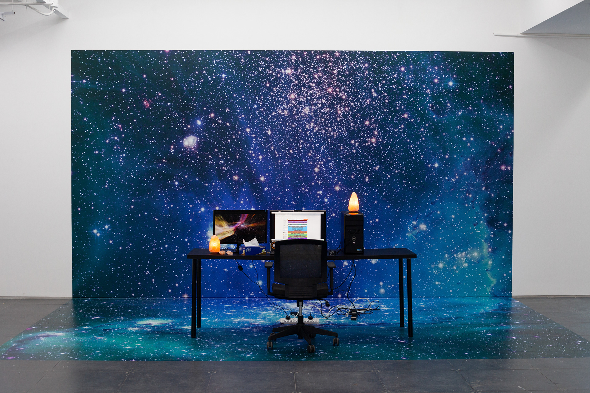 Vinyl, PC computer, screens, rock salt, light, tissues, two digital videosHDV 2:37Dimensions variable